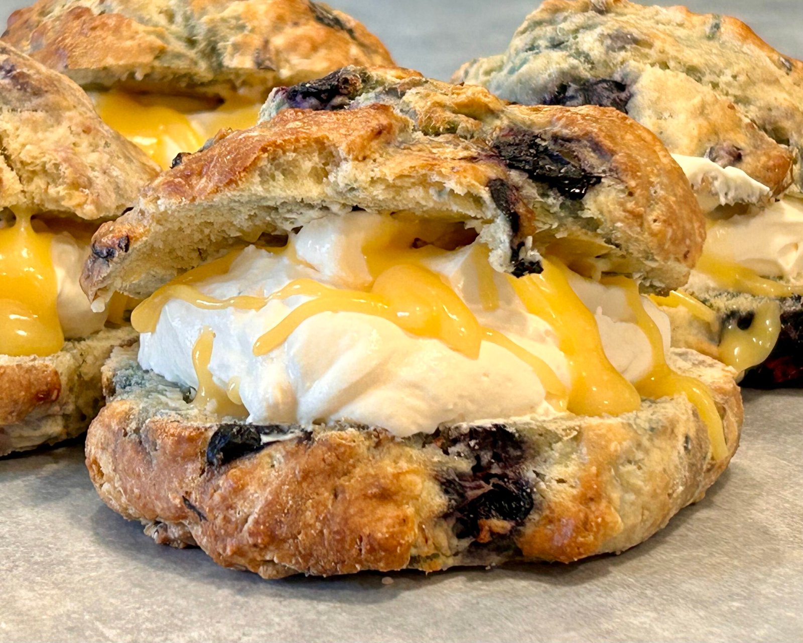 Our hand made scone dough filled with juicy raspberries and baked until golden. (photo does not match product)